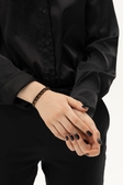 Браслет з чорного оніксу та гематиту 4 мм, прикрашений сріблом 925 проби. Виготовляється вручну, з урахуванням Вашого розміру запʼястя.
